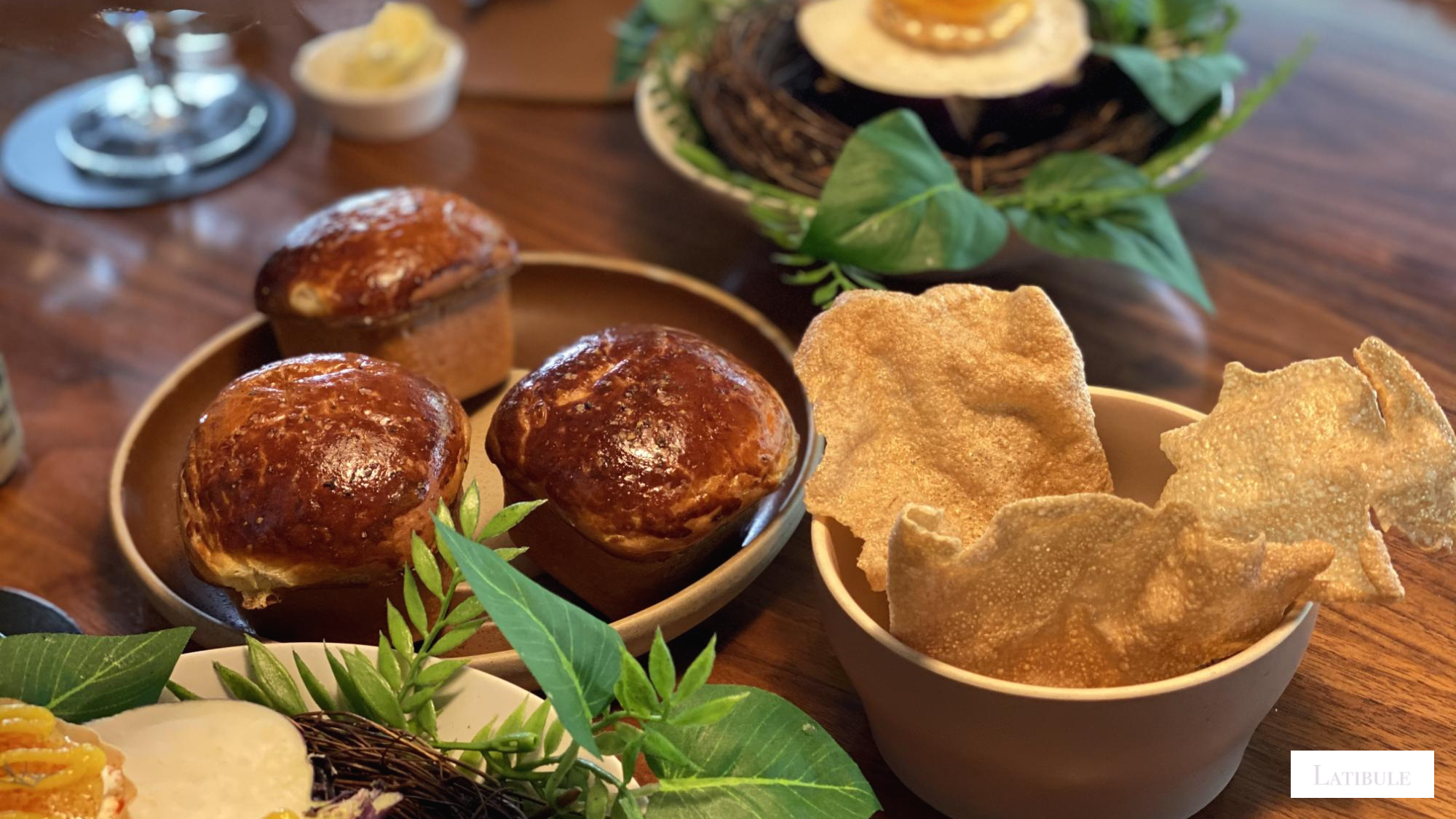 왼쪽은 따끈한 브리오슈 빵이에요. 함께 주신 버터를 발라먹으니 정말 맛있었어요.