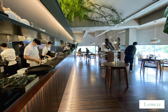 테이블이 많지 않고 여유로운 공간을 활용하여, 서로 식사하는 데도 부담이 없었네요.