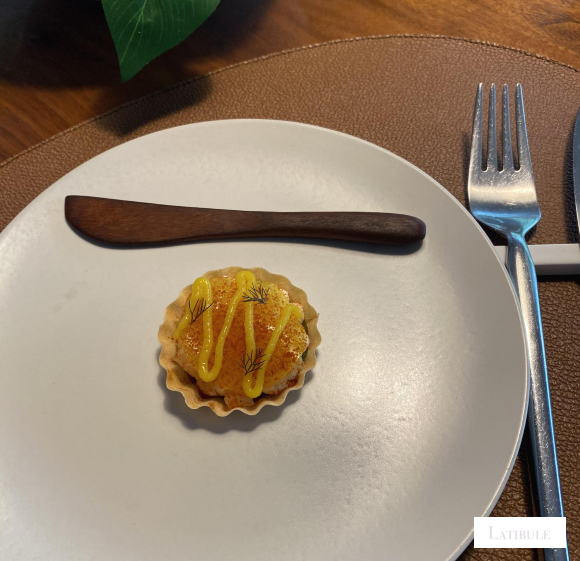 얇은 타르트 쉘에 콜라비와 감귤젤리 등이 올라간 요 아이도 스타터로 함께 나와 한입에 쏘옥 먹을 수 있었습니다.