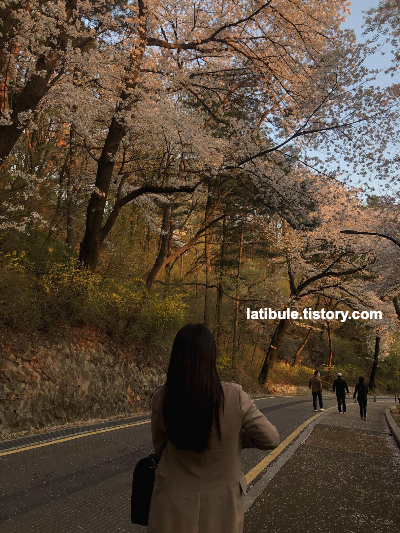남산 N타워에서부터 벚꽃 구경하며 둘레길을 쭉 내려와 보니, 어느새 동국대 앞까지 내려왔습니다.
