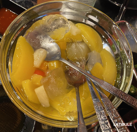 마지막 입가심은 황도로 마무리했어요. 상큼하고 시원했습니다. :)