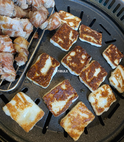 치즈는 금방 구워지기 때문에 저희가 직접 불에 올려서 금방금방 건져 고기랑 같이 싸 먹었어요.