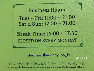 영업시간 : 화~금 11:00-21:00 (월요일 휴무)