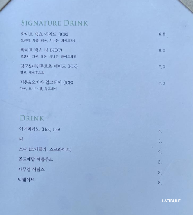 <더댄디라이언>의 메뉴판은 아래와 같습니다.
