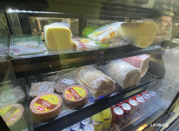 쇼케이스에 들어있는 다양한 햄과 치즈들!