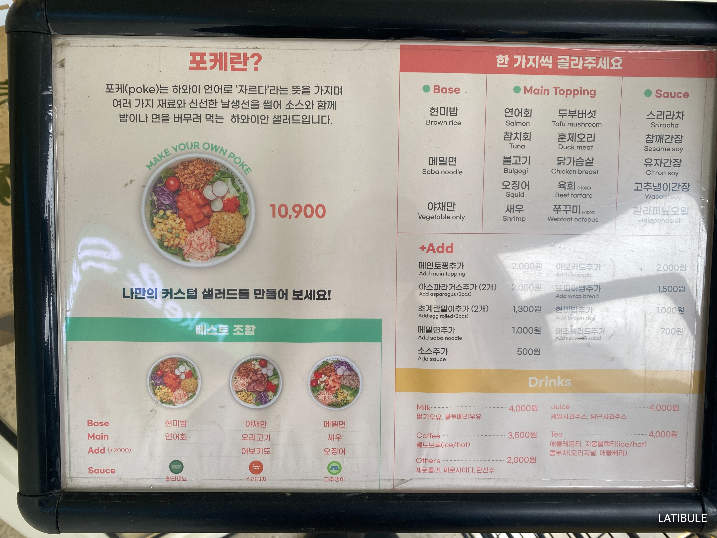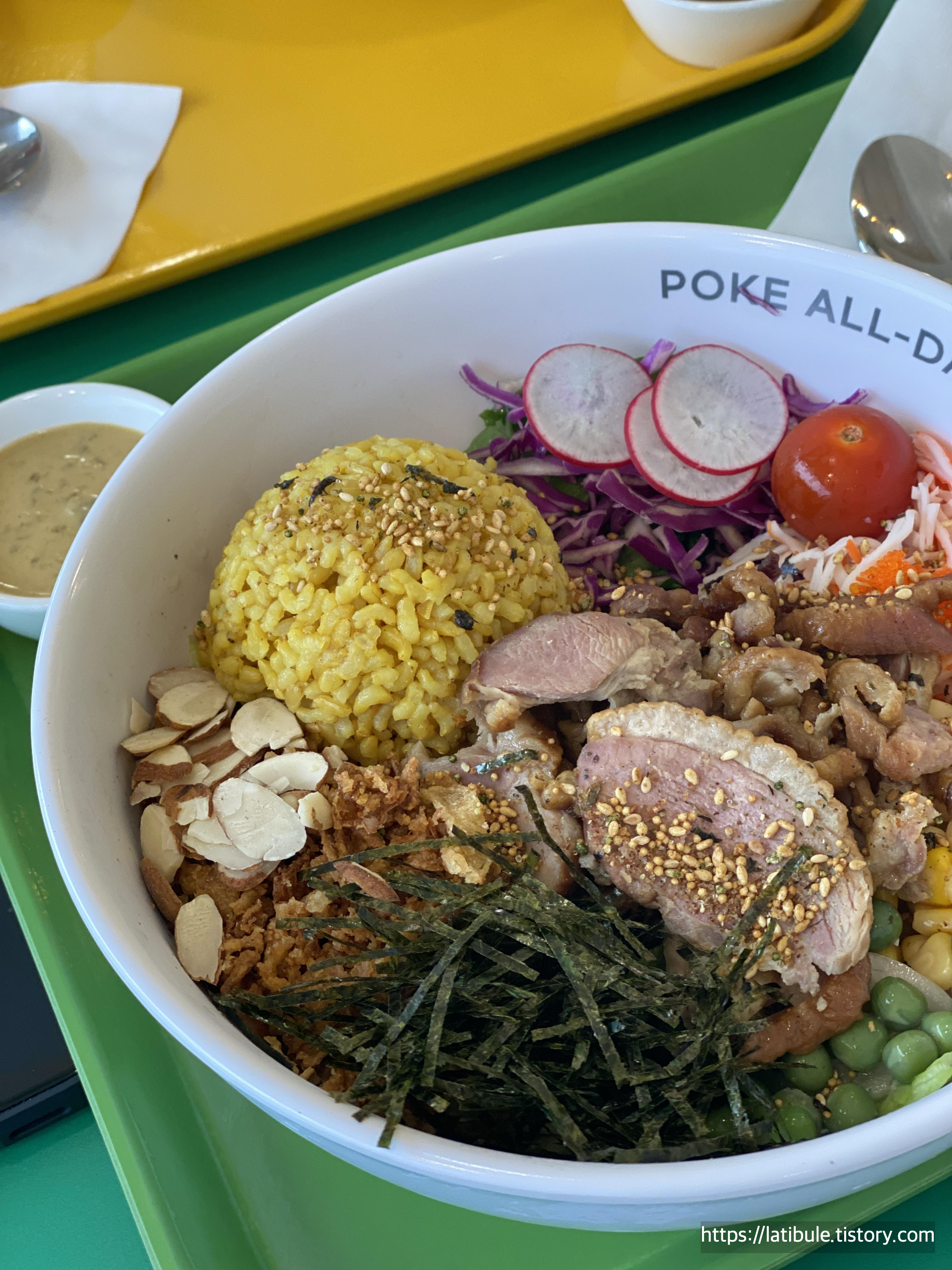 Poke, 토핑, 소스, 사이드메뉴 등을 선택할 수 있어서 다양하게 꾸릴 수 있었어요.