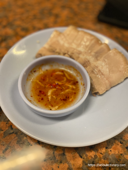 두께가 두껍지 않고 얇은 편이었고, 약간 기름진 느낌이 없지 않아 있는데 새우젓이랑 같이 먹으면 맛있었습니다.