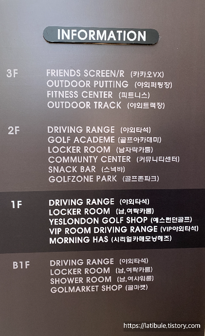 드라이빙레인지 1층 건물 안 왼편에 (Morning Has 카페 바로 옆)