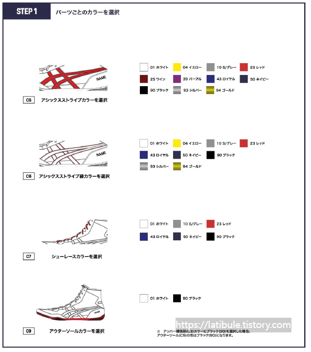 아식스 레슬링 수제화는 커스텀이 가능한 것이 재밌는 요소였는데요.
