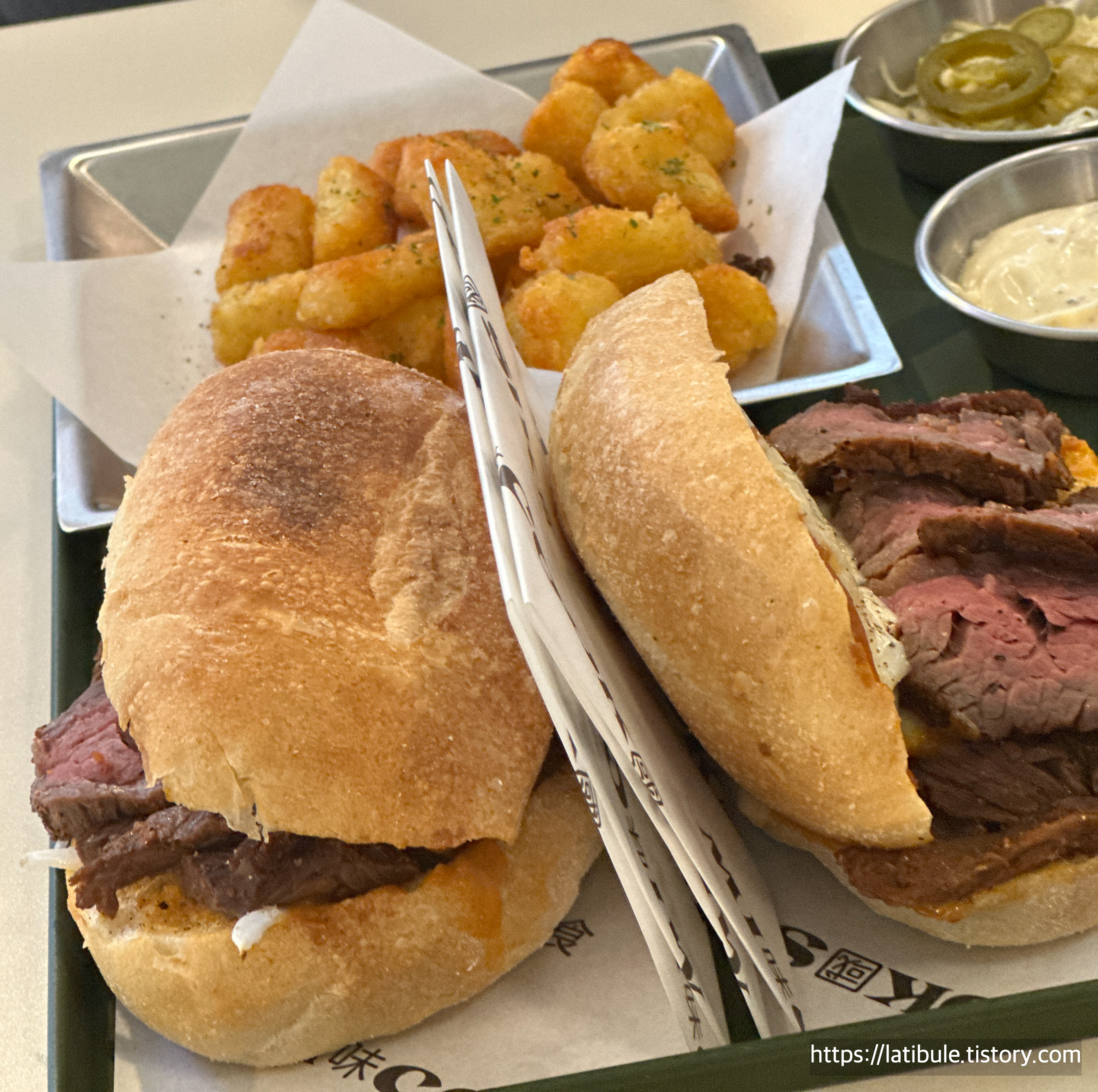 고기, 빵, 양파, 치즈 4가지 만으로 최고의 맛을 끌어올렸다고 해요.