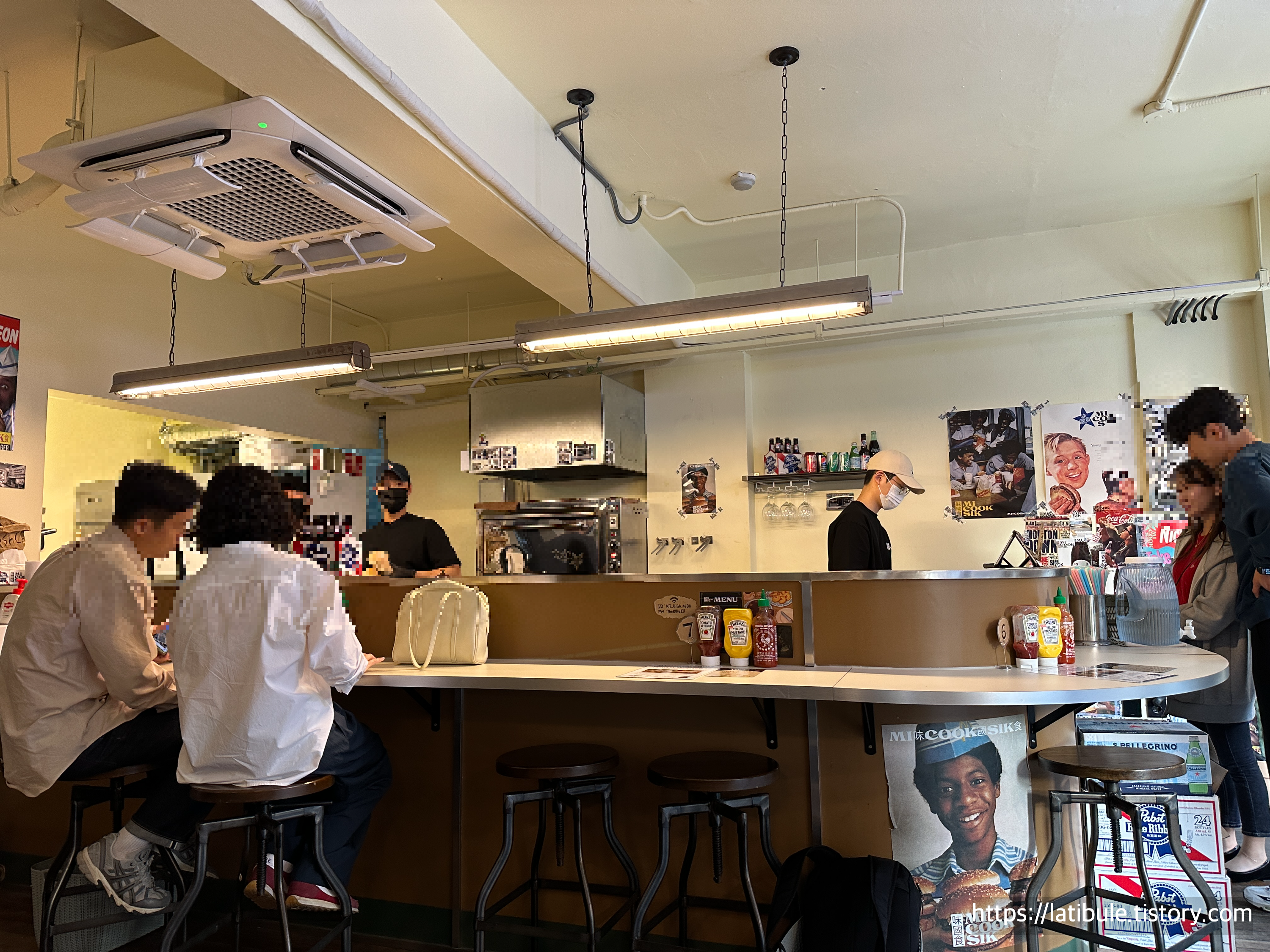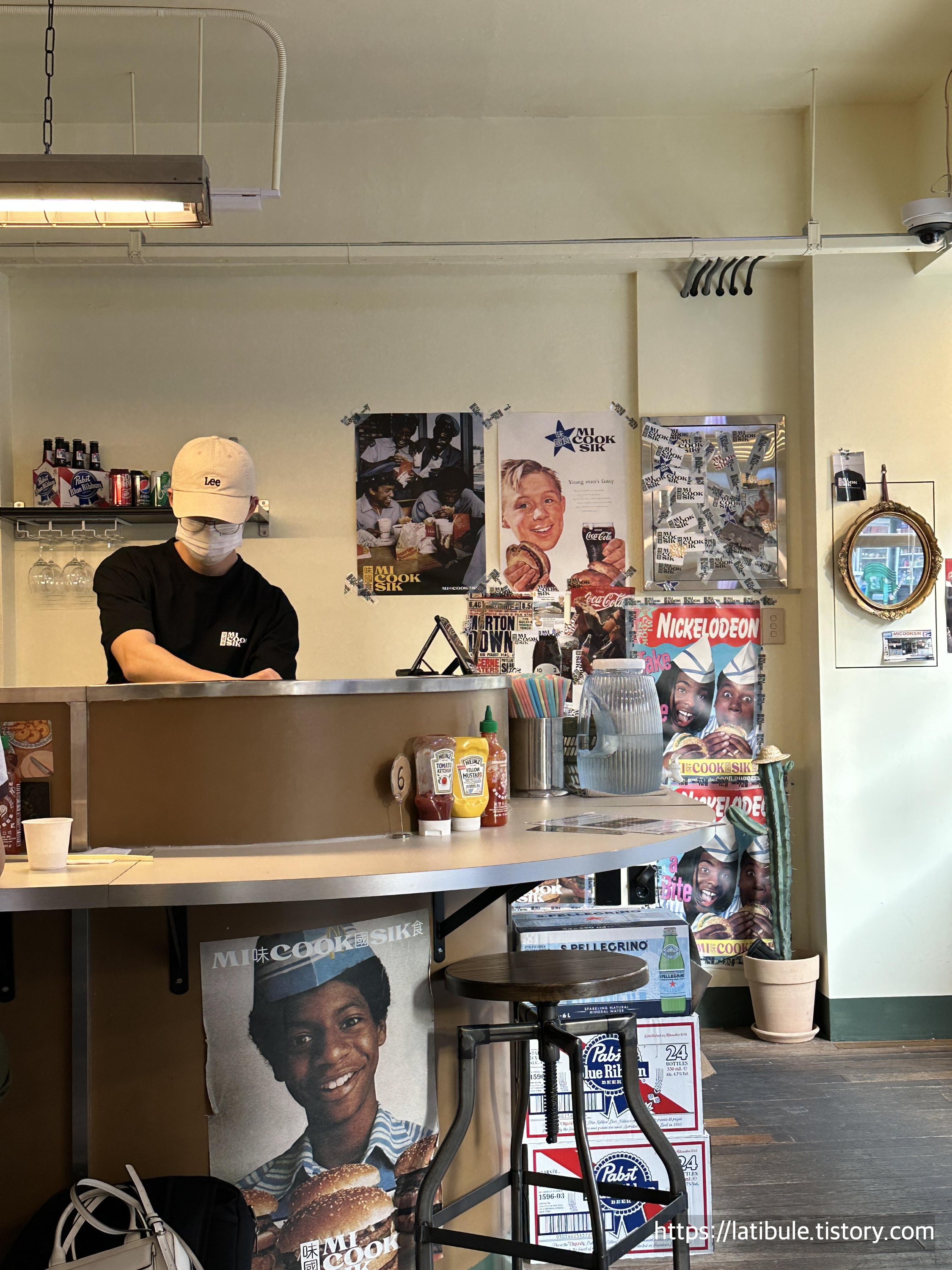 바 자리에 앉으면 버거 만드는 것을 구경하는 재미가 쏠쏠할 것 같아요.