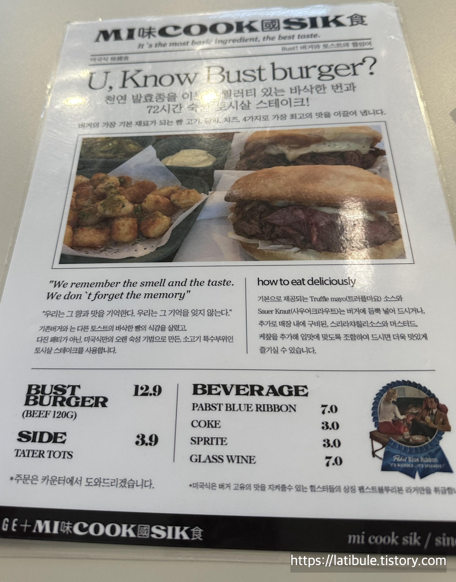 Bust 버거는 Burger+Toast라는 이름이래요.